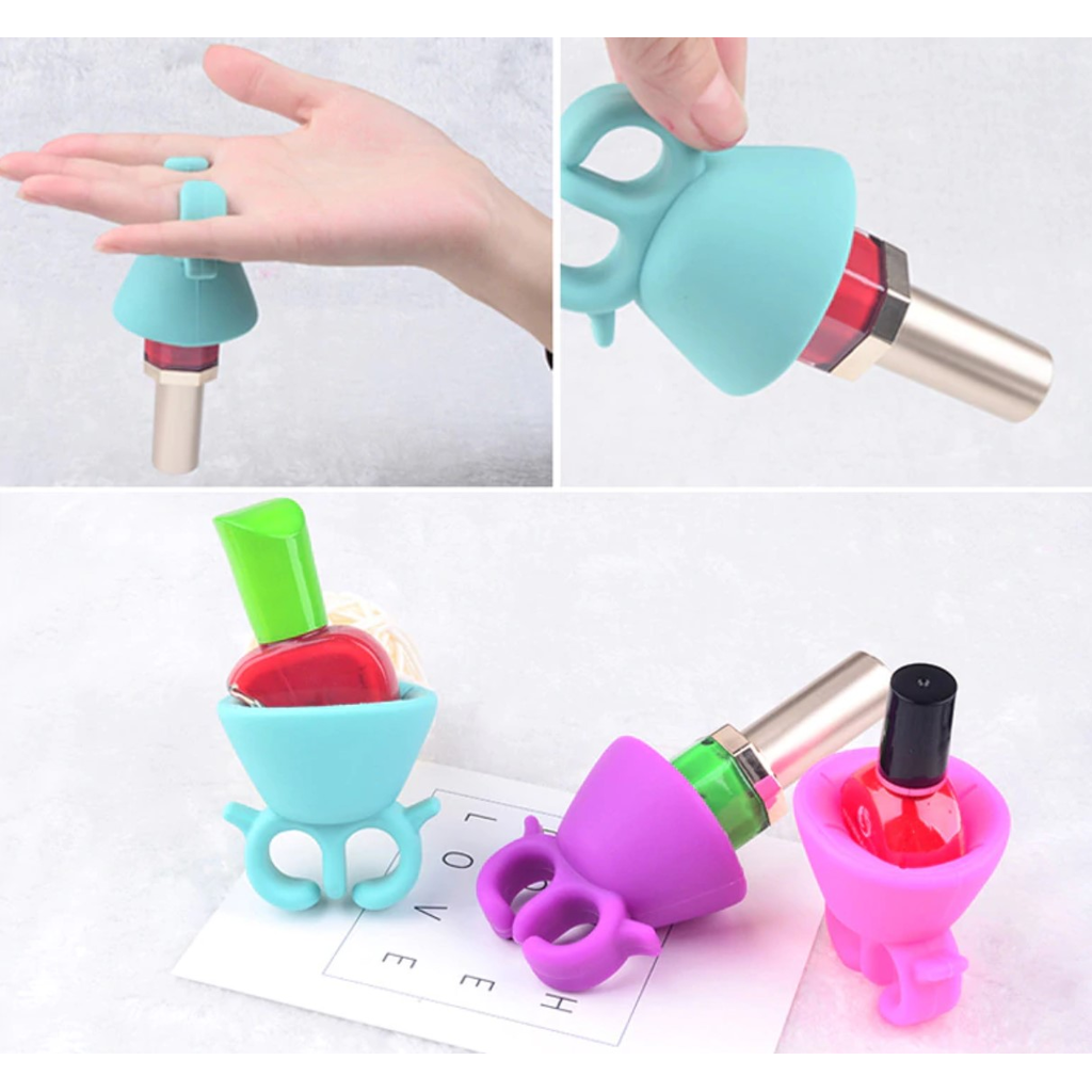 1 Adet Oje Tutucu Pratik Silikon Yüzük Aparat - Asorti