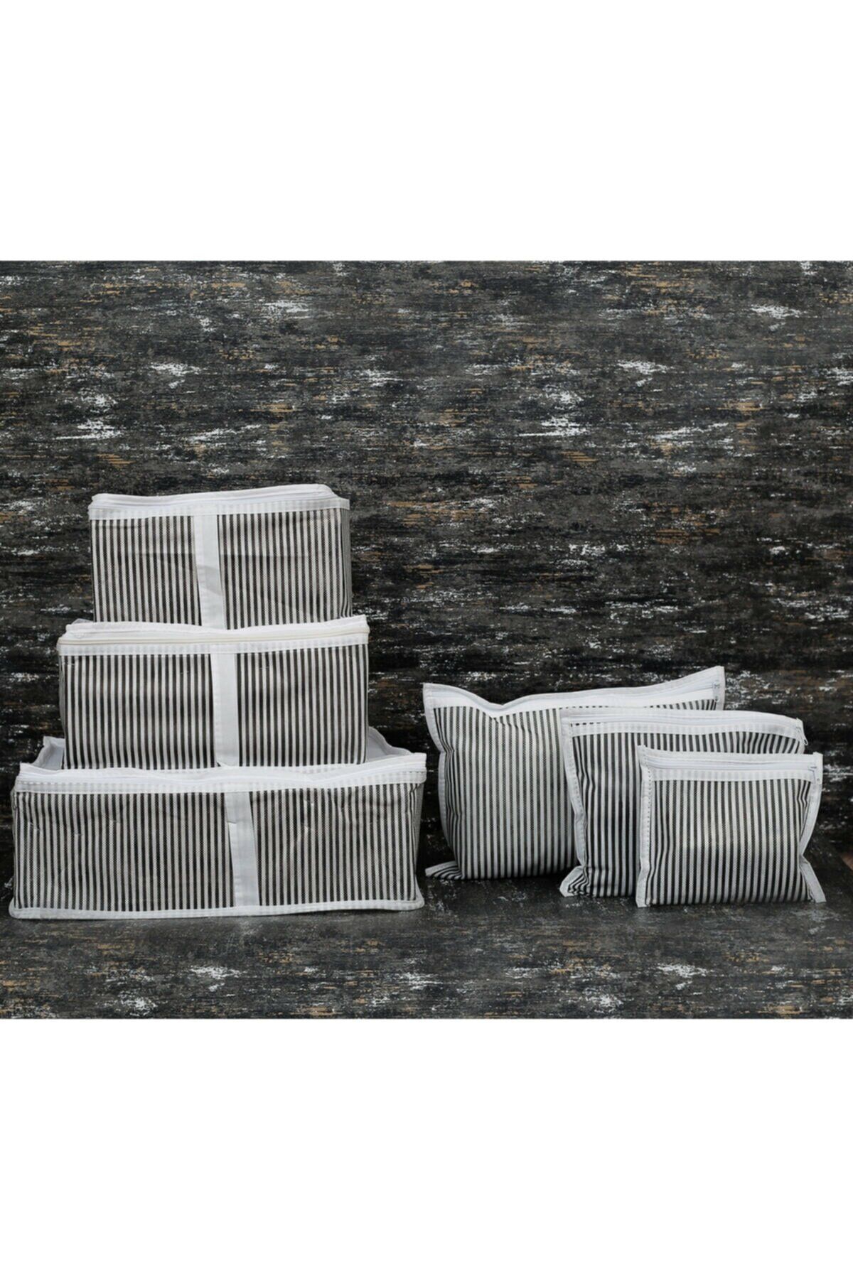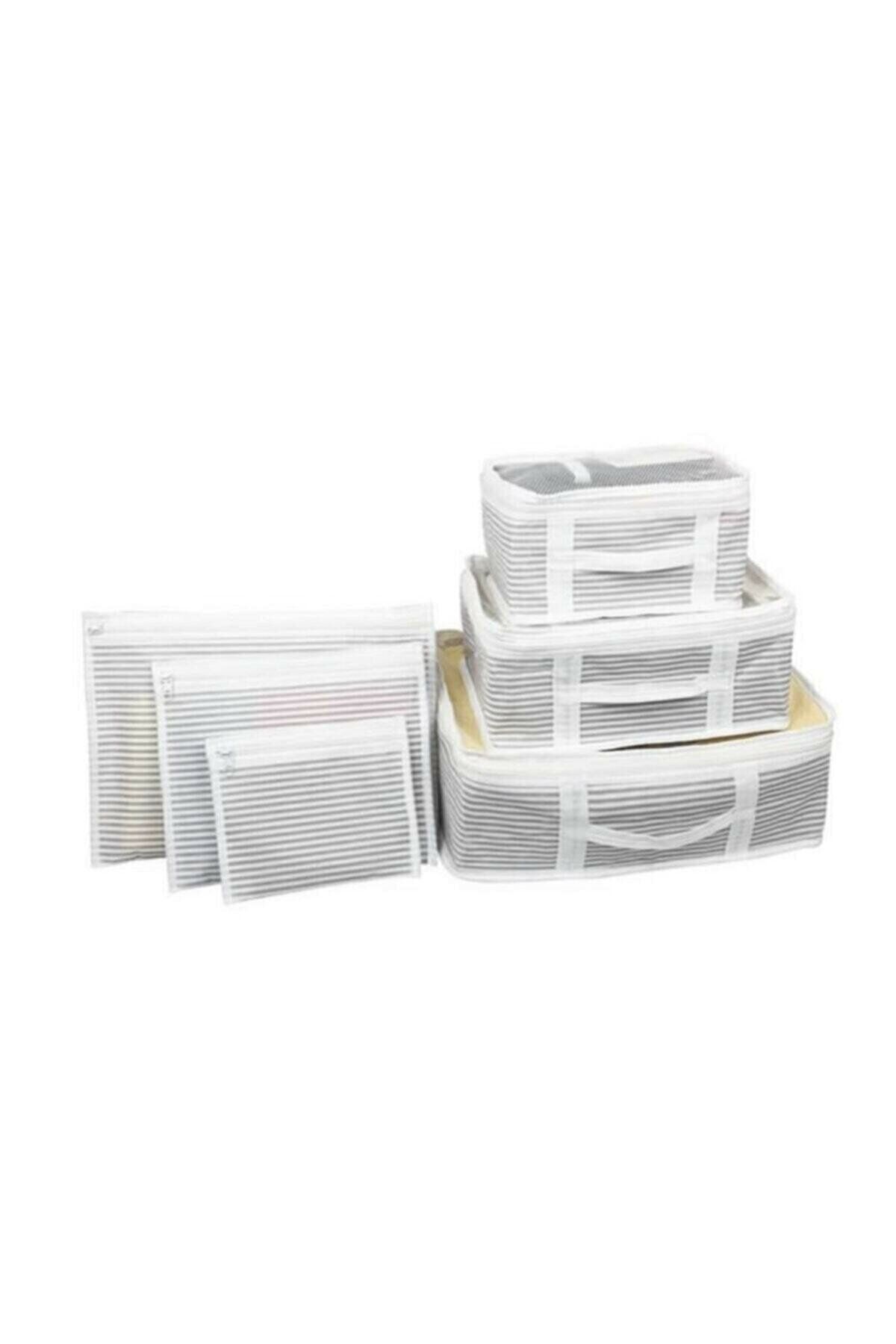 Anne Bebek Hastane Çantası Düzenleyici Organizer 6 Parça Set gri-beyaz çizgili