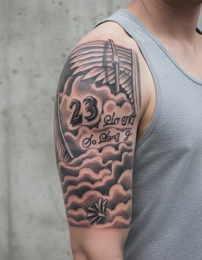 Bulutlar Melek Kanatları Geçici Dövme Şablonu Büyük Boy