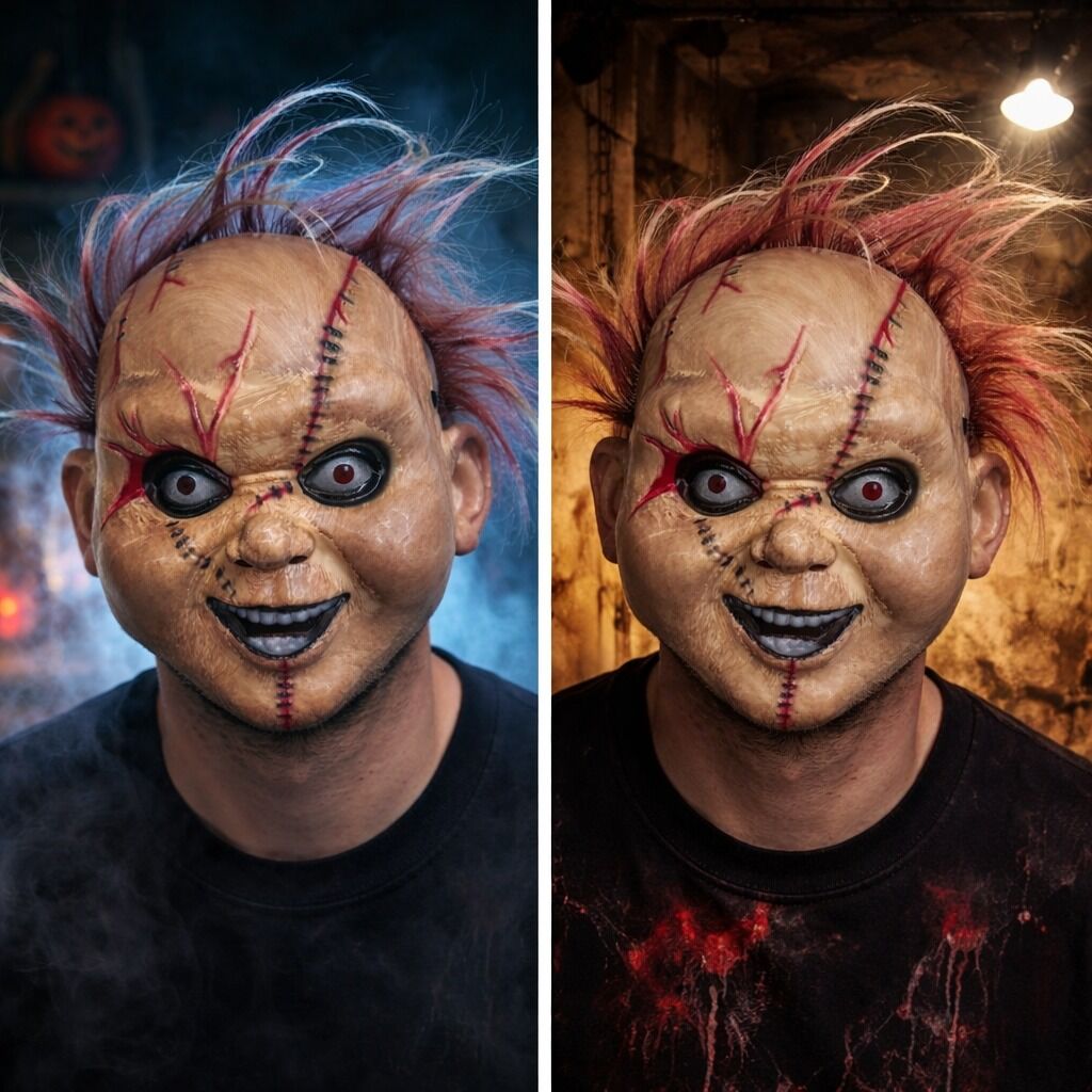 Lastikli baş bandı sayesinde farklı yüz tiplerine kolayca uyum sağlar ve uzun süreli kullanımlarda rahatsızlık vermez. Kostüm partileri, sahne gösterileri ve korku konseptli organizasyonlar için mükemmel bir tercihtir.
