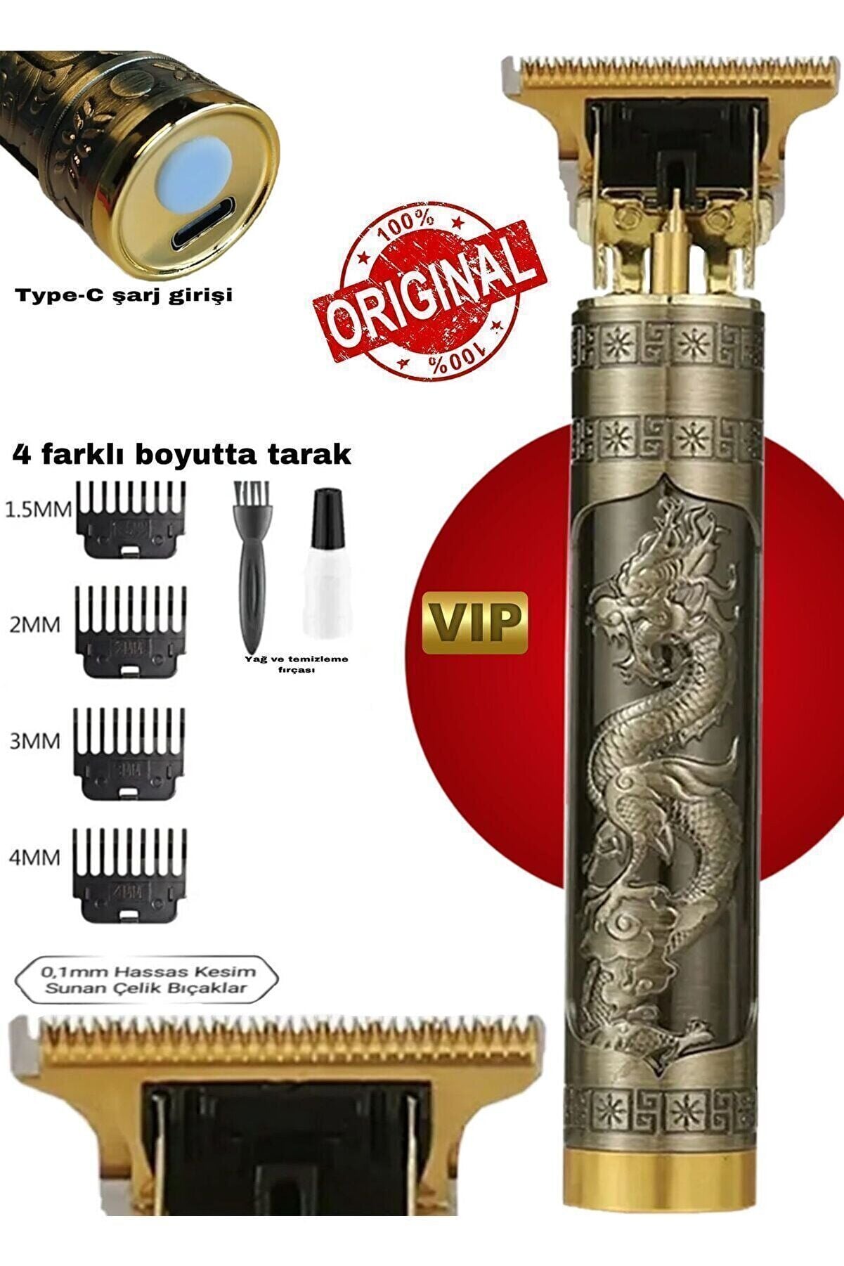 Dragon Çelik Kasa Profesyonel Saç Sakal Ense Çizim Tüm Vücut Tüyü Lazer Öncesi Tıraş Makinesi