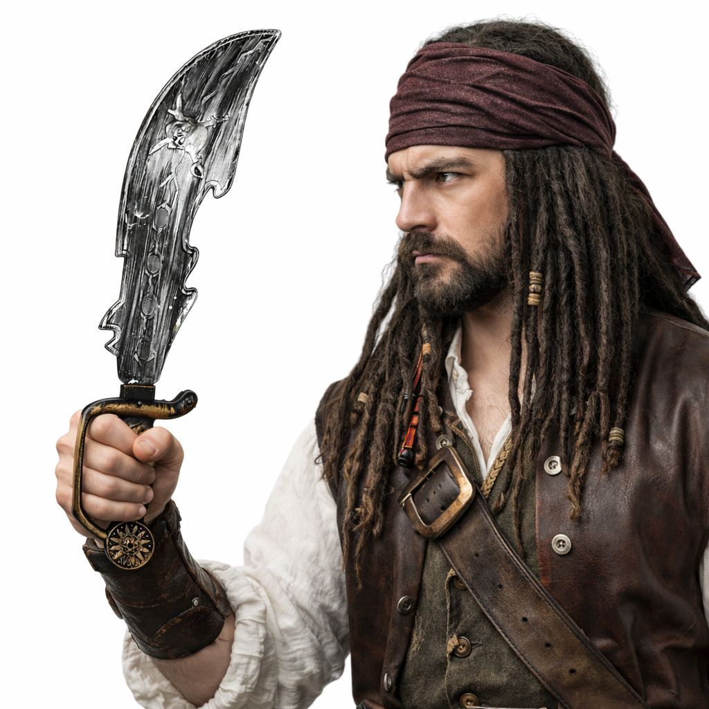 Macera ruhunu yansıtan 45 cm Eskitme Detaylı Korsan Kılıcı, gerçekçi tasarımı ve güçlü duruşuyla kostüm kombinlerinizi tamamlayan etkileyici bir aksesuardır. Özel eskitme efektli yüzeyi ve detaylı kabza yapısı sayesinde klasik korsan stilini yansıtır.