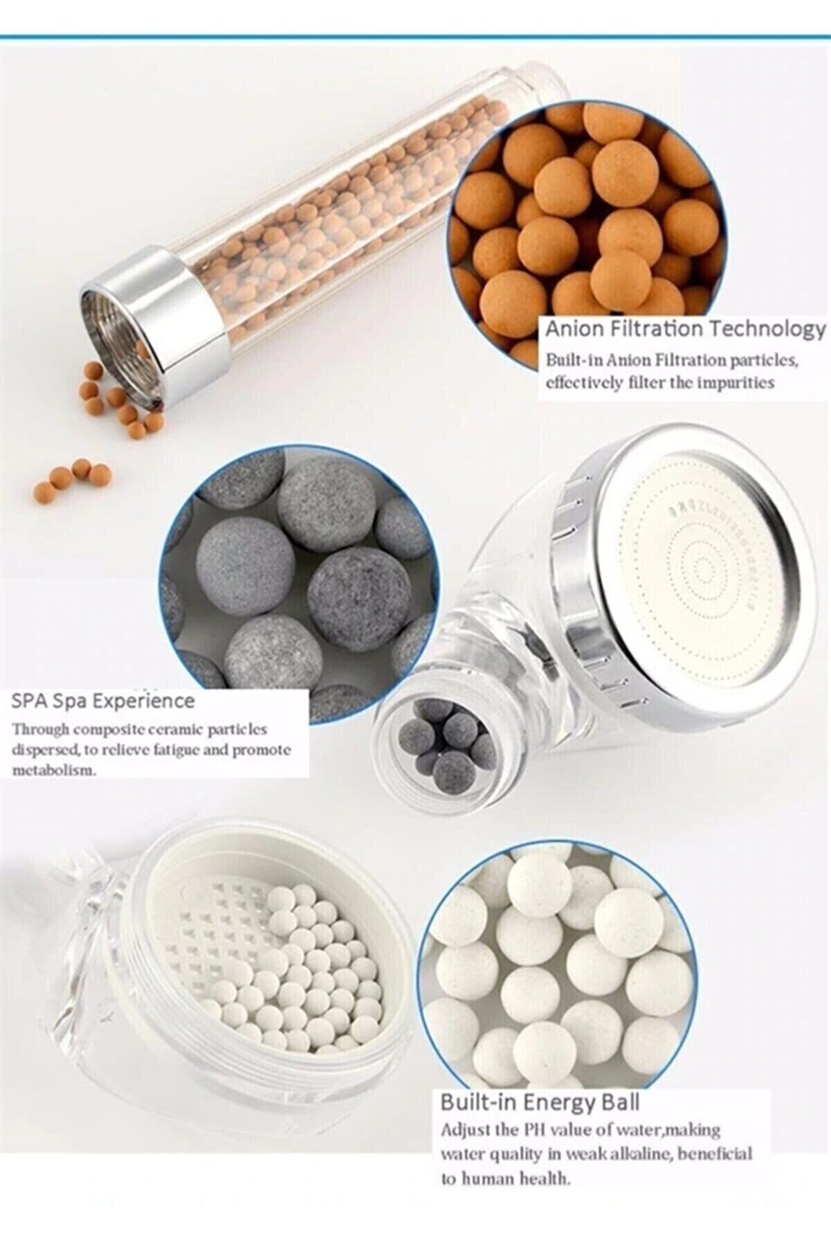 - Filtreli ve Su Tasarruflu Arıtmalı Duş Başlığı Seti Boncuklu Başlık Hortum ve Mafsal Set