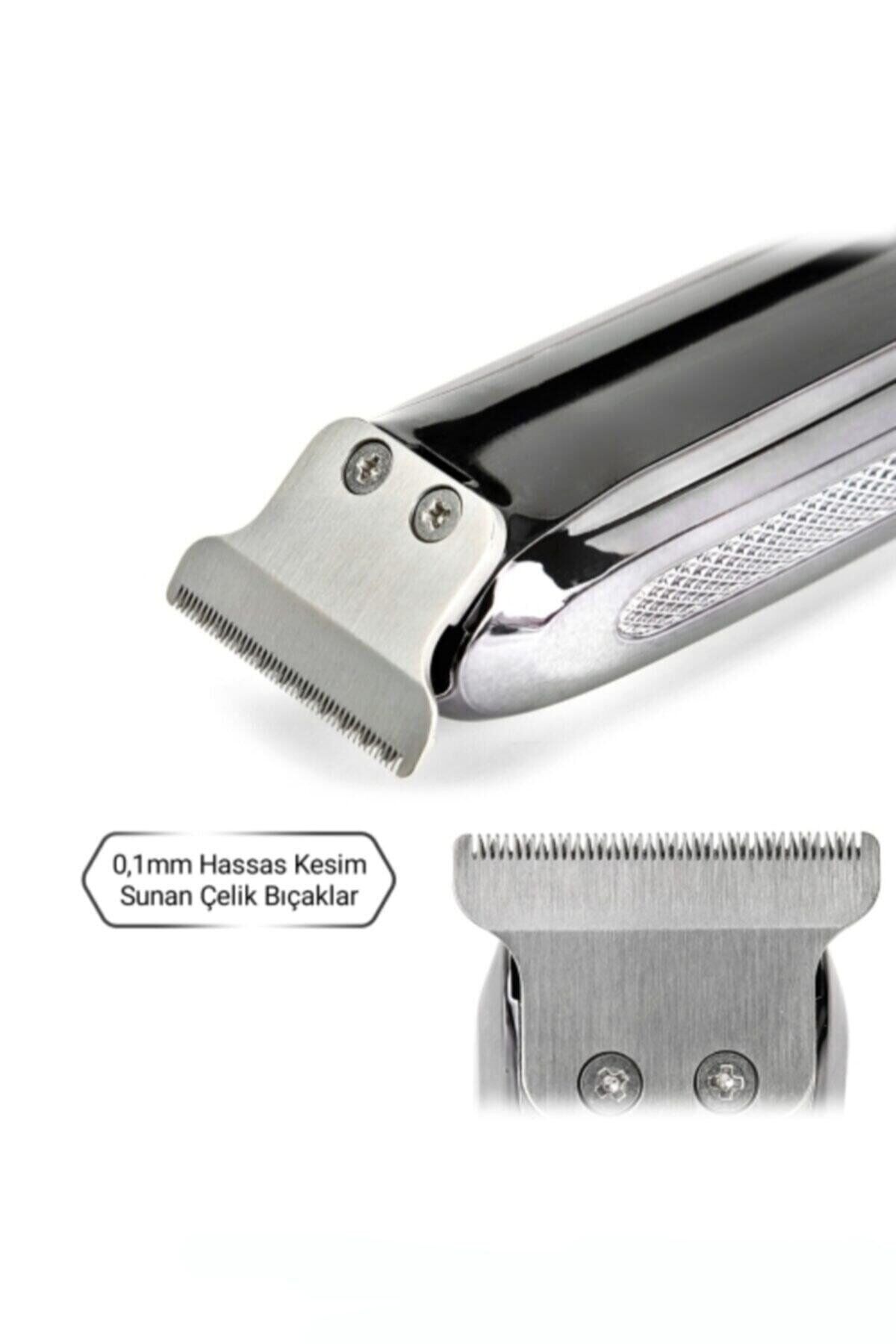 - Özellikler: -saç ve sakal kesiminde mükemmel performans -gümüş "pd.Alloy" motor sayesinde en sık ve sert saç & sakallarda bile Çekme yolma ve yığılma yapmaz -keskin çelik bıçakları dayanıklı ve uzun ömürlüdür -yüksek devir gücü ile sorunsuz tıraş -sessiz ve titreşimi optimize edilmiştir -taraksız kullanımda sıfıra yakın (0,1mm) kesim sağlar -ergonomik yapısı sayesinde kolay kavranır Kutu içeriği: 1 adet şarjlı tıraş makinesi Taraklar 1 adet 1mm 1 adet 2mm 1 adet 3mm 1 adet şarj adaptörü 1 adet temizlik fırçası 1 adet bakım yağı Temizlik ve bakım Makinenin uzun ömürlü olması için bıçaklarını kullanım yoğunluğuna göre düzenli bir şekilde yağlayınız. Öncelikle her kullanımdan sonra kutu içerisinde bulunan temizlik fırçası ile makinenizin bıçaklarında ki saç-Sakal artıklarını temizleyiniz. Uzun süreli kullanımdan (1-2 ay) sonra detaylı temizlik için çelik bıçağın arkasındaki 2 adet vidayı sökünüz ve fırça ile temizliği tamamladıktan sonra uygun kısımları yağlayarak tekrar takınız. Makinenizi suya yada yağa yatırmayınız ve yıkamayınız. Kozmetik temizliği için nemli bez kullanınız. Temizlik aşamasında çözücü ve ovucu maddeleri kullanmayınız.