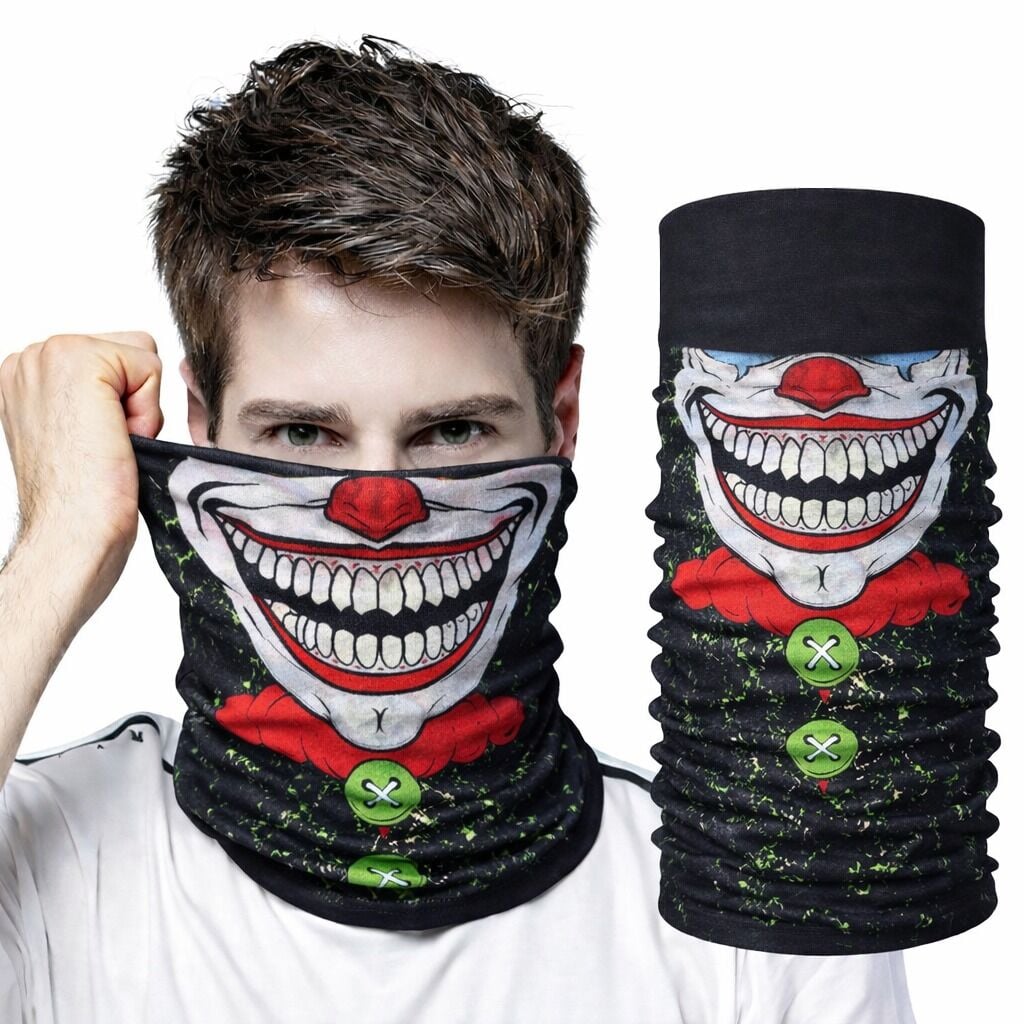Joker Palyaço Desenli Baf Bandana, dikkat çekici joker gülüş tasarımıyla tarzınızı ön plana çıkarır.