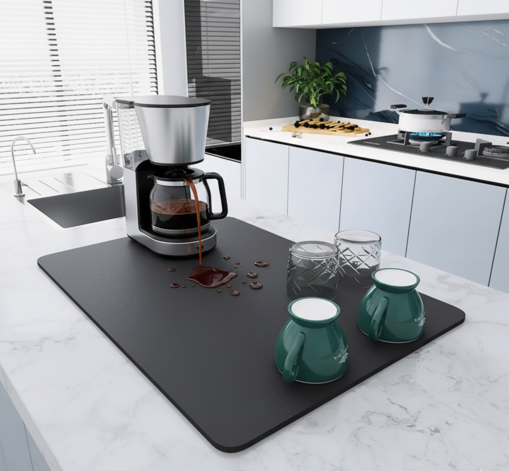 Kahve Makinesi Altlığı Su Emici Kaymaz Taban Tezgah Koruyucu Kurulama Matı