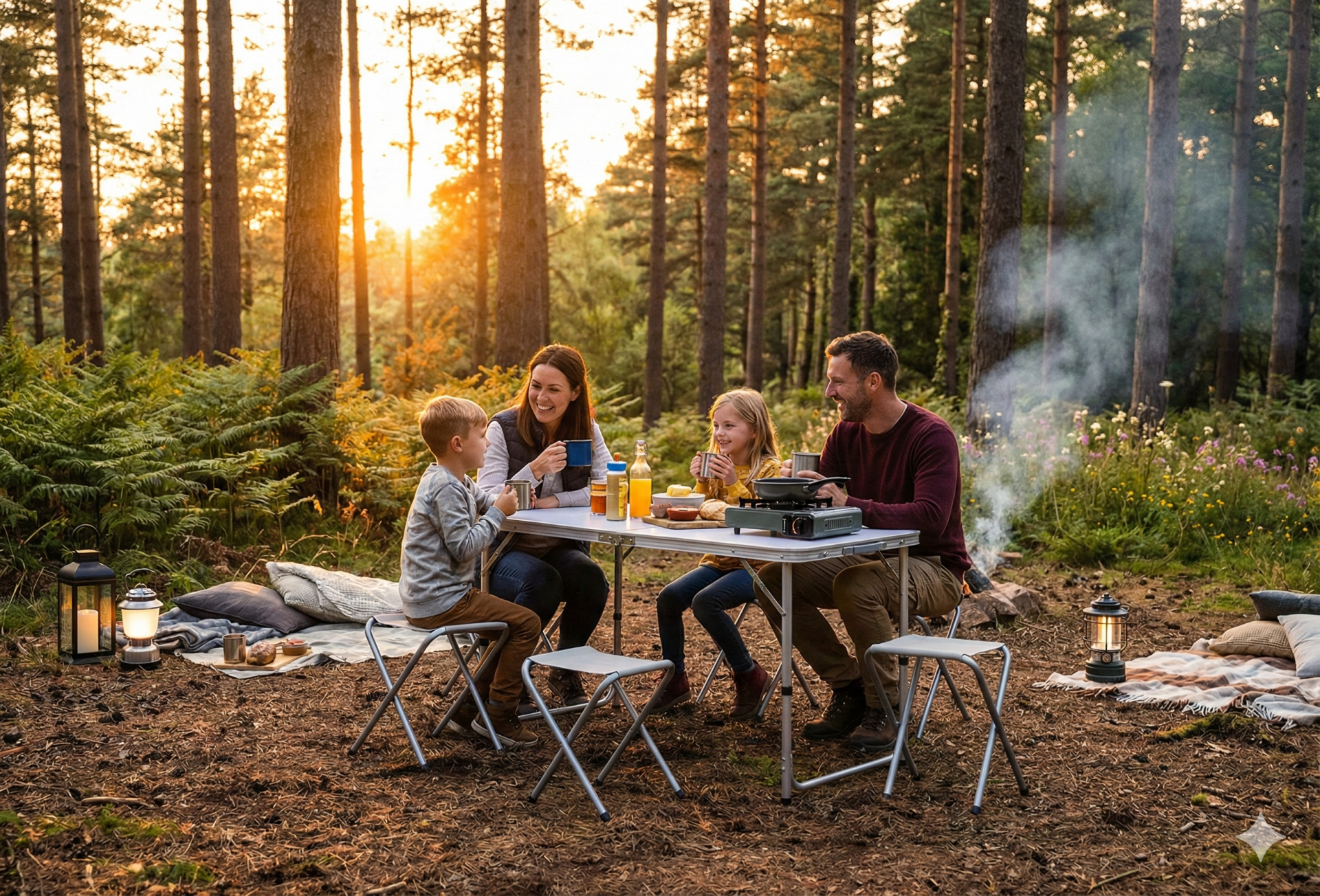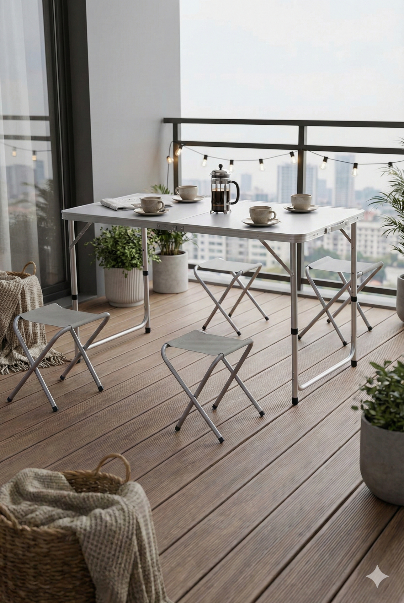 Katlanabilir Alüminyum Kamp Masa 4'lü Tabure Seti