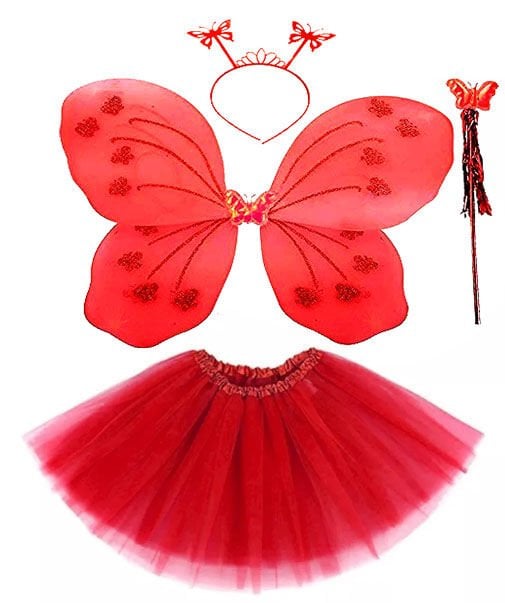 Kırmızı Kelebek Kostümü - Kırmızı Kelebek Kostüm Aksesuar Seti 4 Parça E066-ETEK