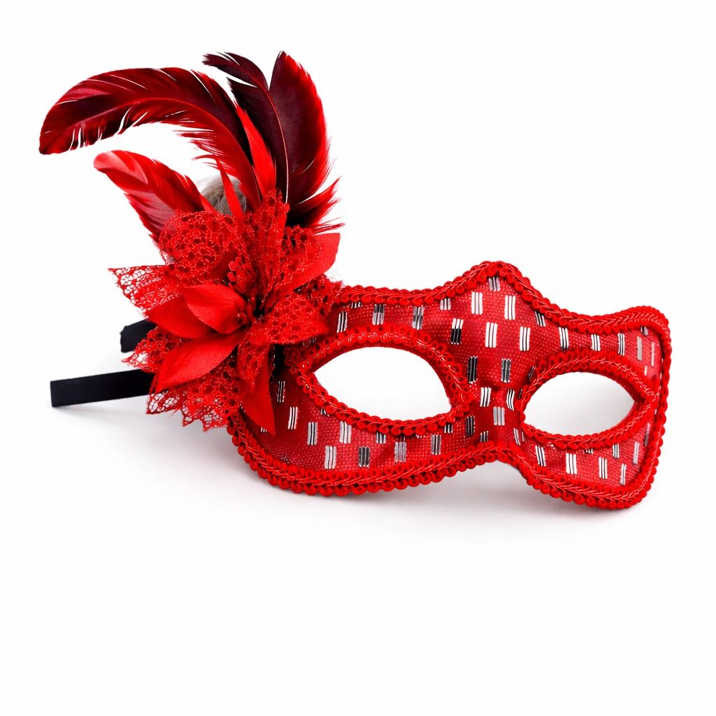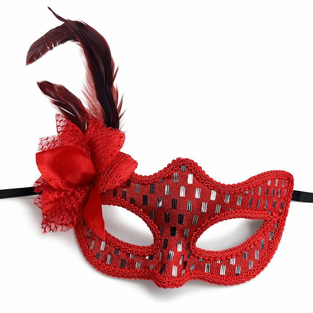 Kırmızı tüylü balo maskesi, özel davetlerden konsept partilere kadar tüm organizasyonlarda stilinizi ön plana çıkarır.