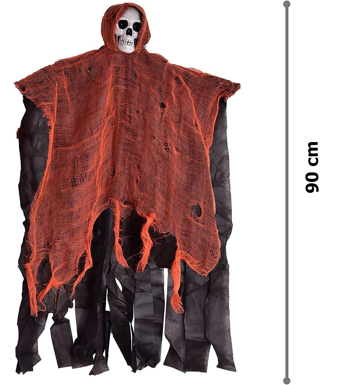 Led Işıklı Kahkaha Atan Sesli Sensörlü Ürpertici Kuru Kafa Korku Hayalet Saçaklı Dekor 90x50 cm