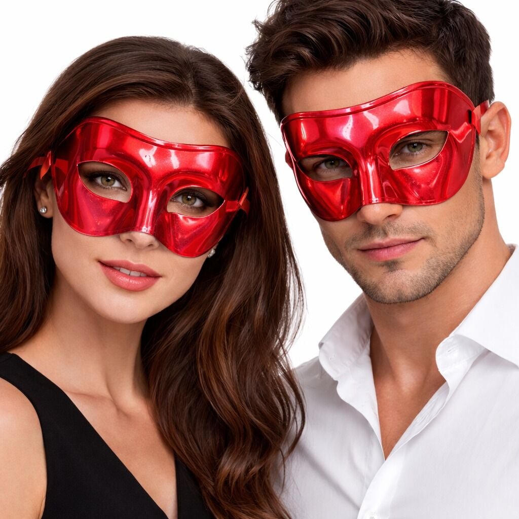 Metalize Parlak Parti Maskesi Kırmızı Renk 16x7 cm