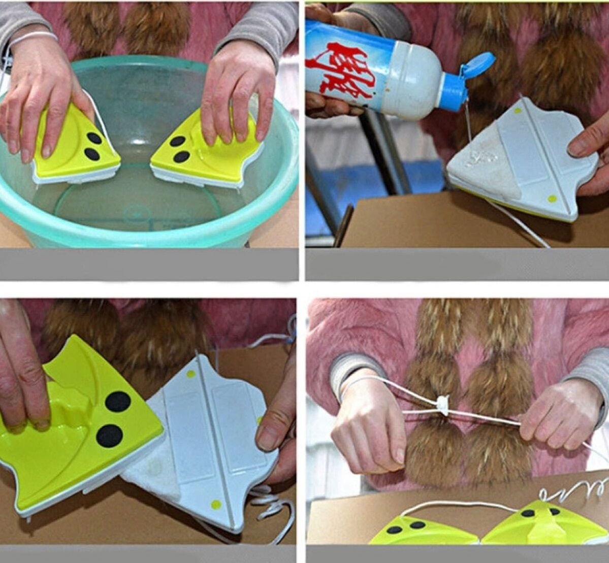 İki parçadan oluşan Pratik Cam Temizleyici, camın iç yüzeyinden diğerini dış yüzeyinden karşılıklı gelecek şekilde yapıştırarak temizliğe başlayabilirsiniz. Camın dış bölümüne takılan parça üzerinde bulunan güvenlik ipi sayesinde ürün camdan kurtulsa bile aşağıya düşmez.