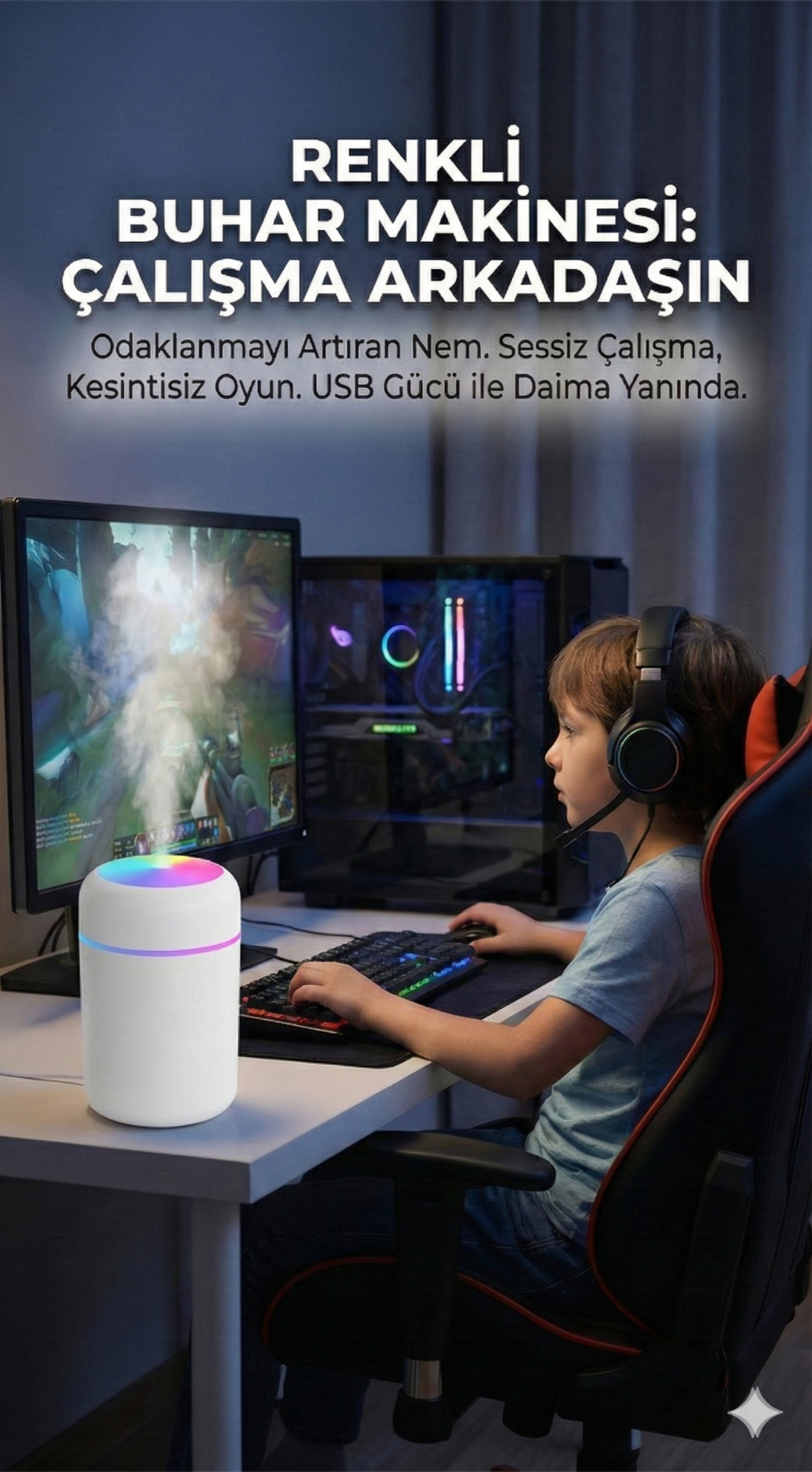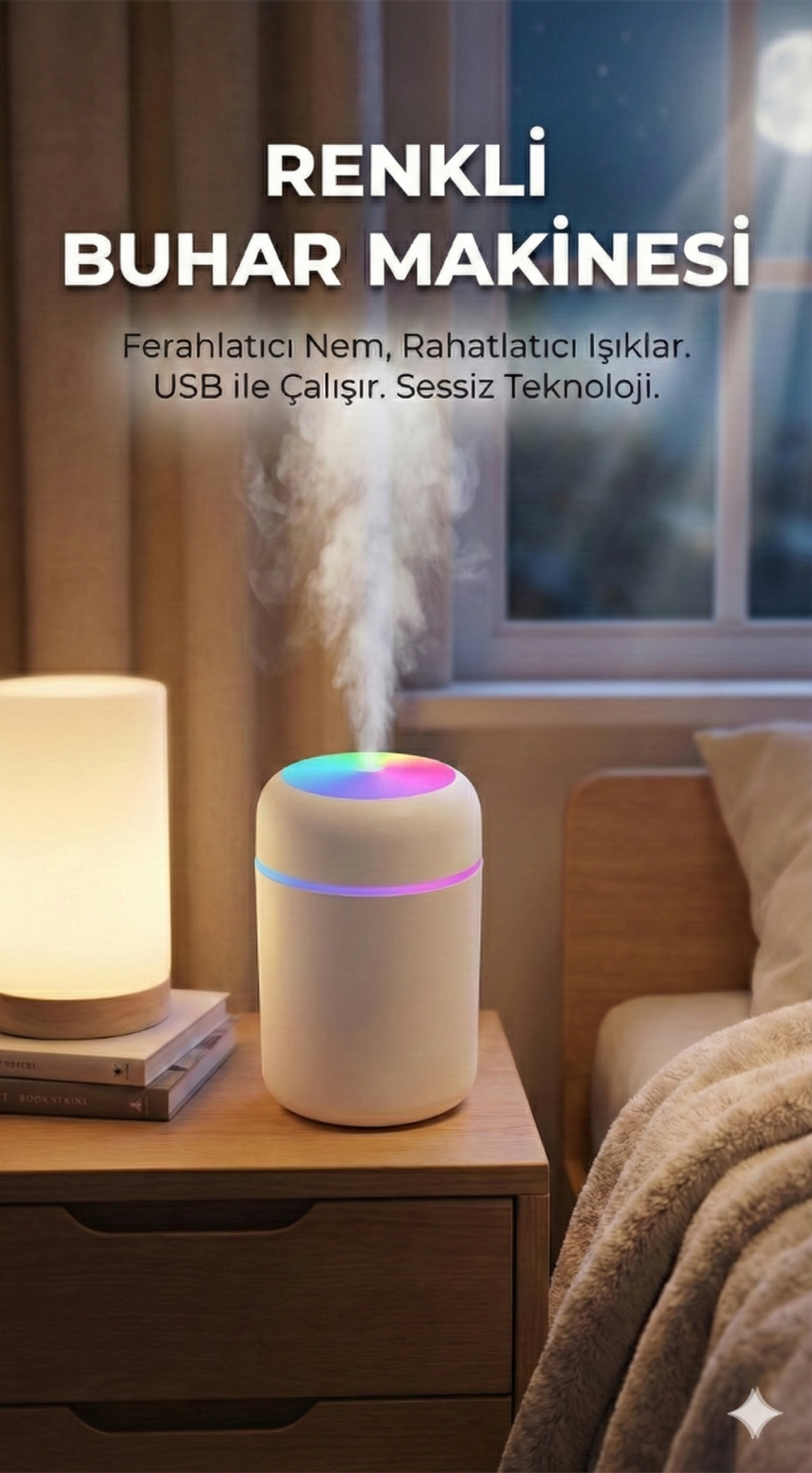 Nemlendirici uyurken ve çalışırken sizi rahatsız etmez.