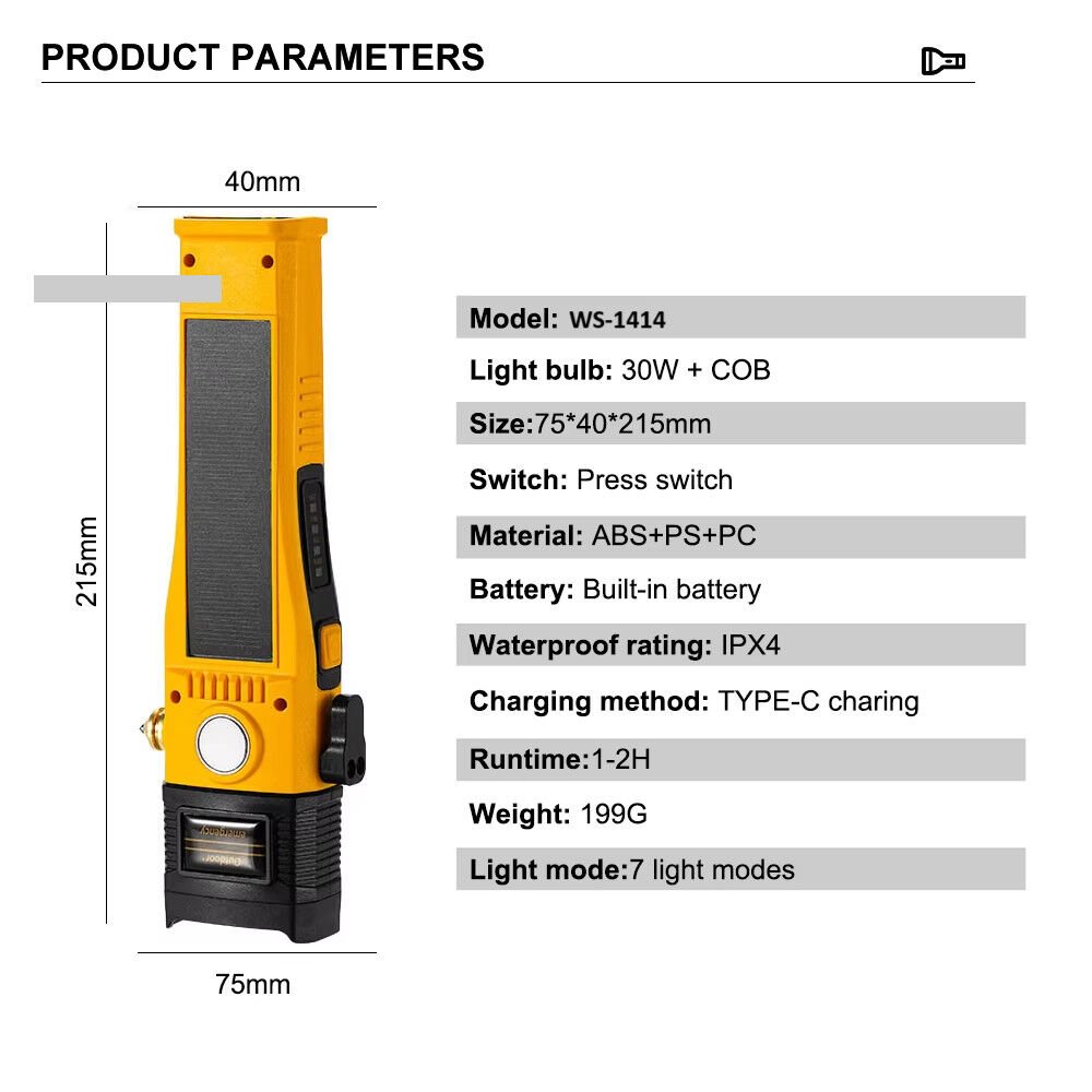 Wison WS-1414 Cam Kıracaklı Dijital Göstergeli Mıknatıslı Şarjlı Acil Durum Tamirci Feneri